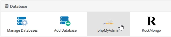 - Odată autentificat în panoul de administrare Webuzo, se caută în fereastra afișată secțiunea "Database" și de acolo se selectează "phpMyAdmin"