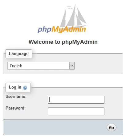 - În pagina ce se va deschide, va apărea o fereastră unde se va introduce utilizatorul și parola bazei de date pe care se dorește accesul, după care se apasă butonul "Go".