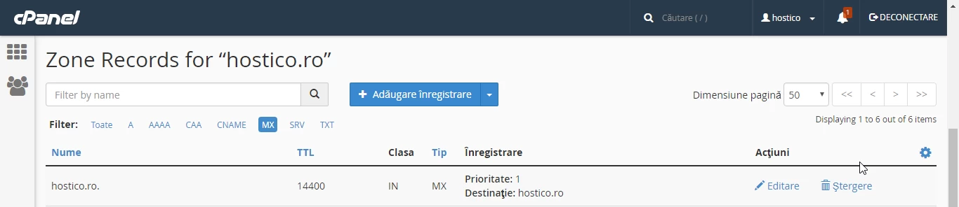 Adăugarea unei înregistrari MX în panoul de administrare cPanel, redirecționarea serverului de e-mail către Google