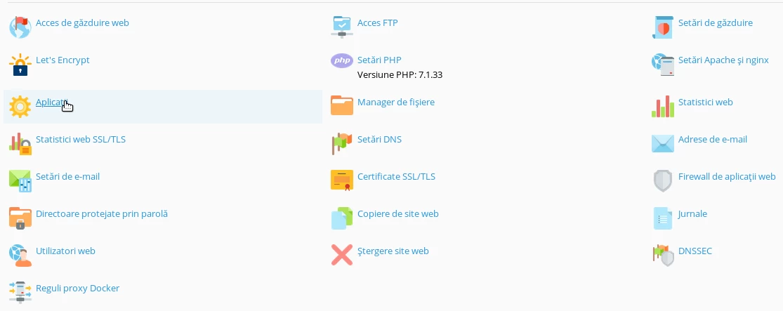 Instalarea unei aplicații web în panoul de administrare Plesk