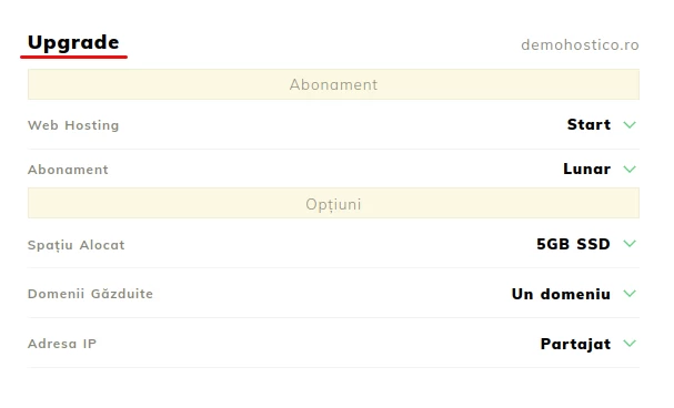 În acest tutorial vom parcurge pașii necesari plasării unei comenzi de upgrade la o găzduire.