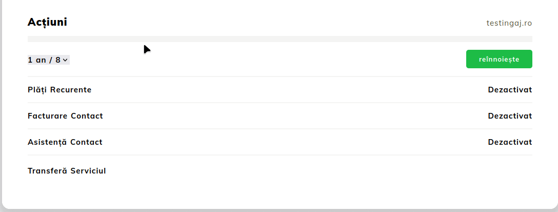- În pagina deschisă se va merge în partea de jos la meniul Acțiuni, după care selectăm perioadă dorită și executăm butonul Reînnoieste