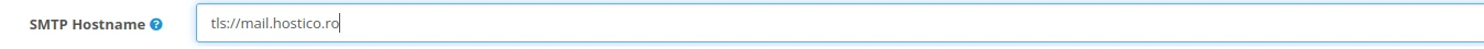 3. SMTP Hostname se completează numele serverului de mail de forma mail.domeniu.ro . Se va completa inclusiv tls:// sau ssl:// in fata hostname-ului